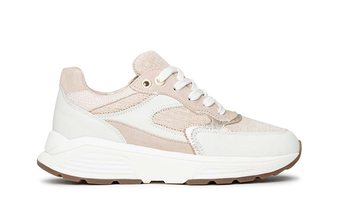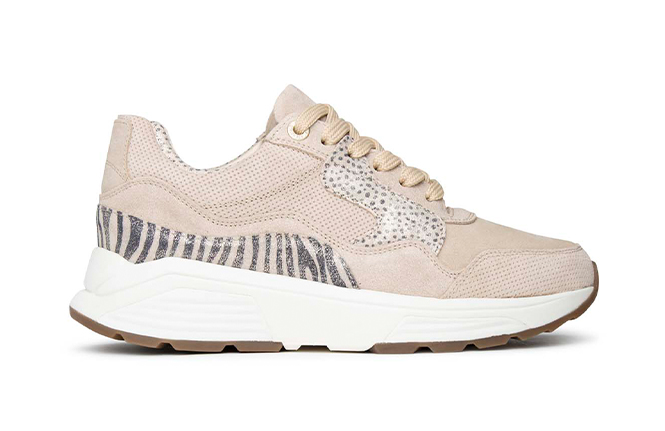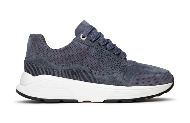 Uitneembaar voetbed. Geschikt voor eigen inlegzolen. Materiaal suède en mesh. Met balans afwikkelzool.