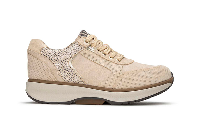 Uitneembaar voetbed. Geschikt voor eigen inlegzolen. Materiaal leer en canvas. Met balans afwikkelzool.